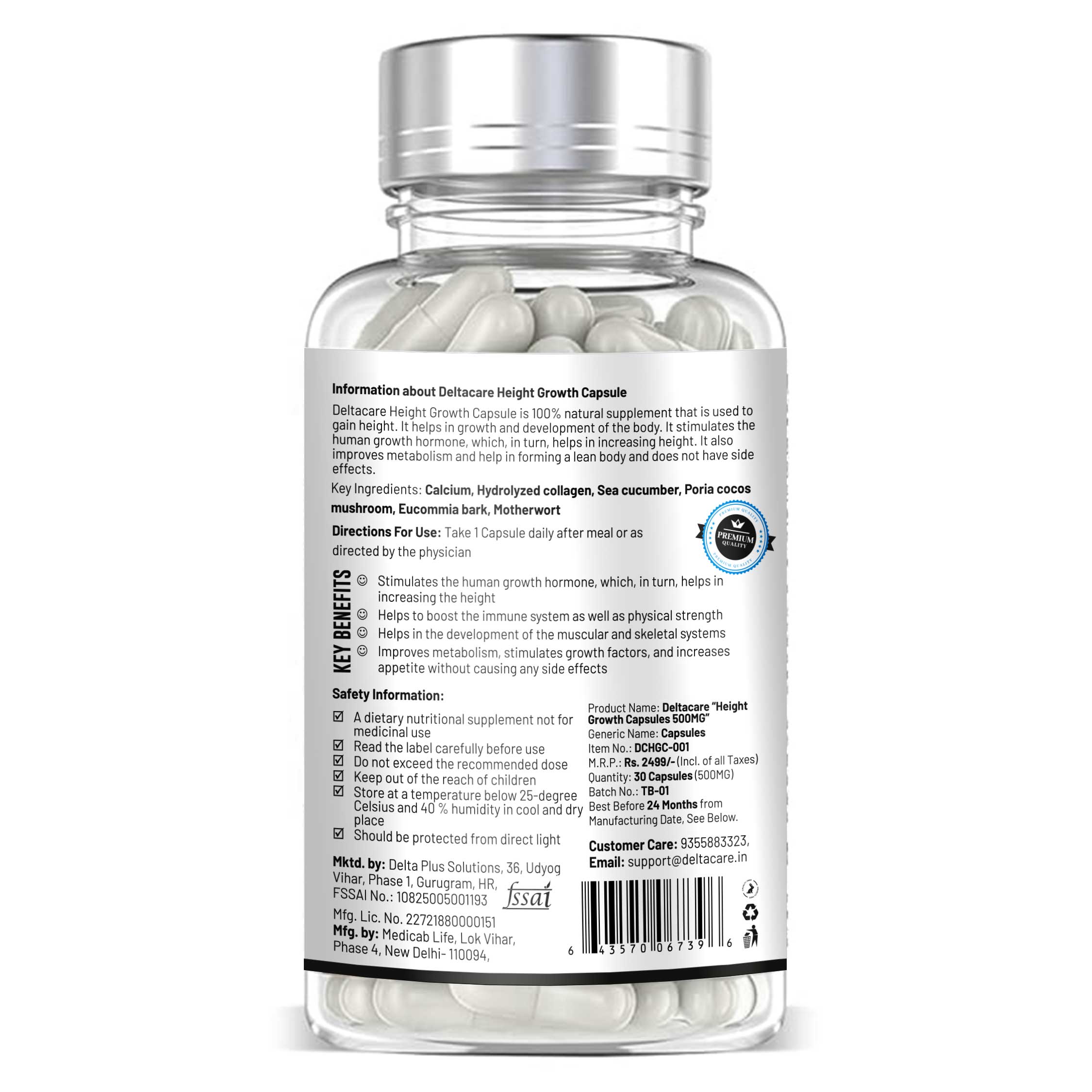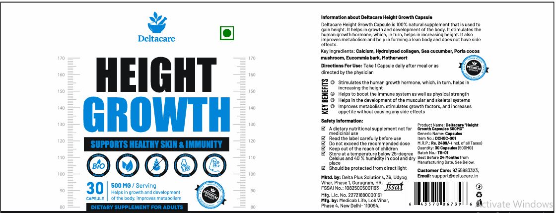 Deltacare Height Booster Capsule is 100% natural supplement that is used to gain height. It helps in growth and development of the body. It stimulates the human growth hormone, which, in turn, helps in increasing height. It also improves metabolism and help in forming a lean body and does not have side effects.